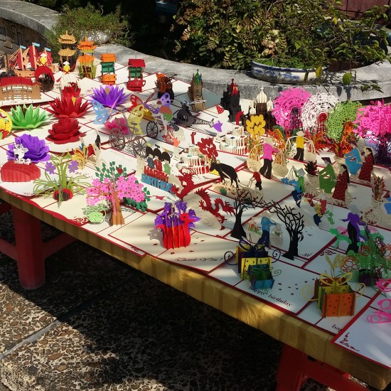 I would advise you not to go to Hoi An if you are in a hurry though, because you definitely have to make a lovely walk through the old city like we did. We went to a very old building which had gorgeous pearl-shell furniture and we drank a cute little cup of green tea. They had put stickers in one room to show how much the place can flood sometimes. A few years ago the water was all the way up high, meters! It was full of water until the ceiling. Really scary, and really amazing how they managed to still preserve much of the furniture.