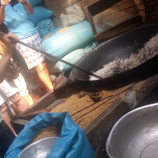 The last piece where we stopped was the place where they made the puffed rice, they made sand really hot, poured rice into it and after a few seconds the rice started popping. It was remarkable to see. Then the puffed rice was sieved and put in a pot together with a caramel-like substance to make them all stick together. Then they were put in this rectangular baking shell and flattened, before they stuck them in a bag for selling. We had a piece that was still warm, which was great, but also the pieces with peanuts I bought in the store were very amazing. I could not help but also buy some coconut toffee thingies and other peanut sweets. Lovely. Not good for my new years resolutions, but as I haven’t really bought much, I thought it was okay. There is no chocolate in this country (or not really..) so I do not take in a lot of refined sugar here anyway..