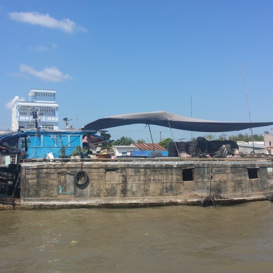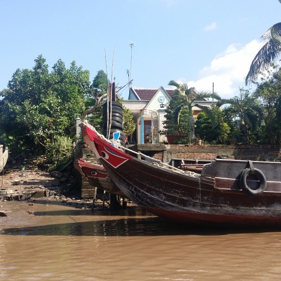 After that we went on a boat trip on the Mekong river. It took us all around an island, and it was very interesting to see how much influence the sea has on the river. Before lunch the tide was pretty normal, but afterwards the tide was so low that we saw some boats stuck along the way. Our boat had to go very slowly not to get stuck or broken, so that was a bit boring, but it was a truly lovely boat trip on this very interesting river.
