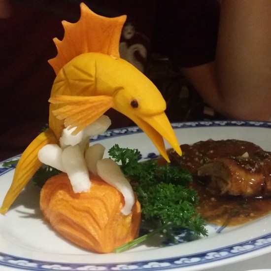 It was a bit pricy and a bit posh, as next to us a few Japanese people all dressed up were eating lobster, while we were more comfortably dressed as we were headed to the cinema. So, at this fine dining restaurant we had to act like we were at Burger King. We lost some time due to waiting for confirmation of getting no table at the pizza place, so we only had 45 minutes to order, eat and pay. Thankfully the restaurant was not just great in design, but also in staff. They were very professional and they promised our food would be on time, which it actually was.