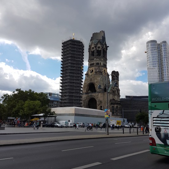 My favorite building in Berlin is the Second World War church memory place, I am not sure what it is called, but it is a church that looks bommed, the pointy roof is off, and it is in the middle of a big square near the zoo. Lucky me: I had a dinner and rooftop drinks on two nights at that same square, first in the big Mercedes building (the Puro lounge) and then at Bikini, which is very trendy! Really loved it, as I could see my favorite building all the time, and at least I knew the area a bit.