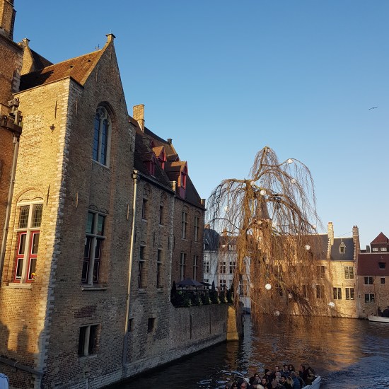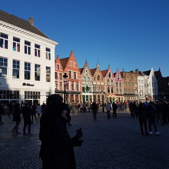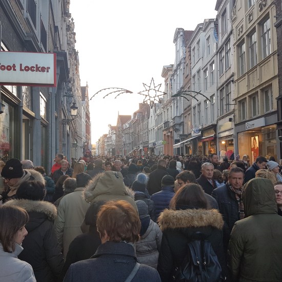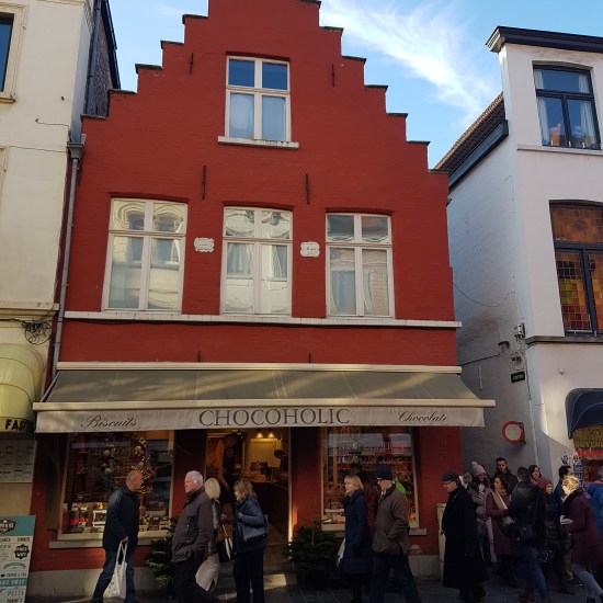 I love Belgium, cause they know chocolate. That is something you could definitely see, smell and taste in Bruges. The whole town is one big Christmas market, with not a lot of stalls, but a lot of little stores in the beautiful little buildings that Bruges is so famous for. In many of the chocolate stores they hand out samples, so you do not have to buy lunch hihi. We did though, we went to this place at the big square of Bruges where Audrey Hepburn herself had dinner. Pretty cool.