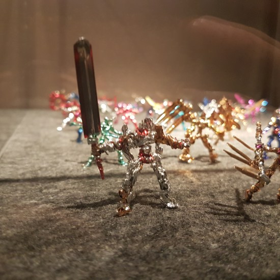 Please find below a few pictures of it, I am not sure how often their collection changes, but it is nice to have a place for the less artistically schooled people to express themselves. Obviously they do that pretty well. Especially the piece with the bread sack closing thingies that look like Transformers is awesome: