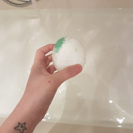 I understand there has been a So White shower gel and even an older version of the So White bath bomb. However, the one I am discussing right now is the Christmas 2016 version. At first I did not realise the bath bomb is supposed to look like an apple, with a green leaf on top. I thought it was just a green holly on top, but I was wrong, it is an apple.