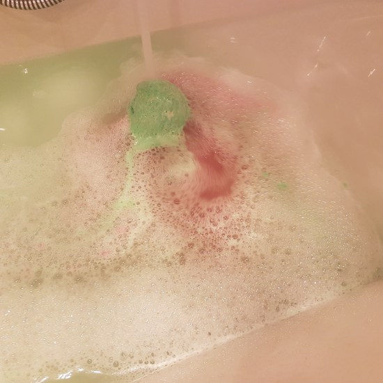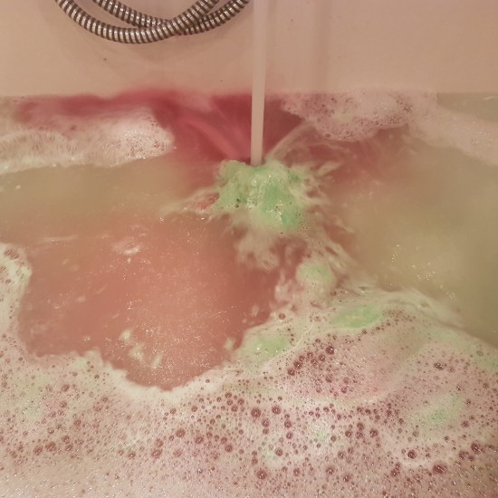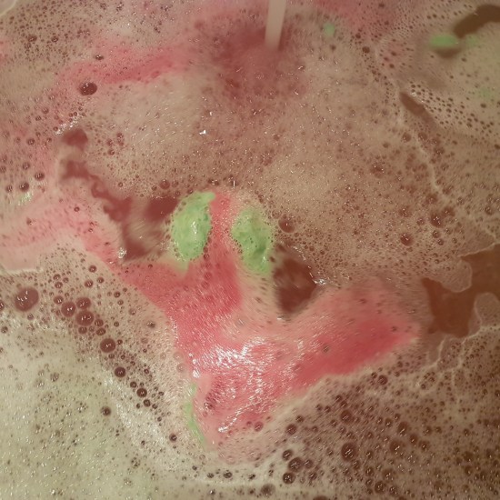 Well, I can imagine why, cause it really does make your bath a very odd color. At first you hold this light green bath bomb in your hand, but as soon as it touches the water, it starts to let loose this crazy red color that makes the bath looks like red wine, or like blood that has been watered down π And it is not just the color: Lord of Misrule has a very nice smell that is pretty strong, which is what I love.