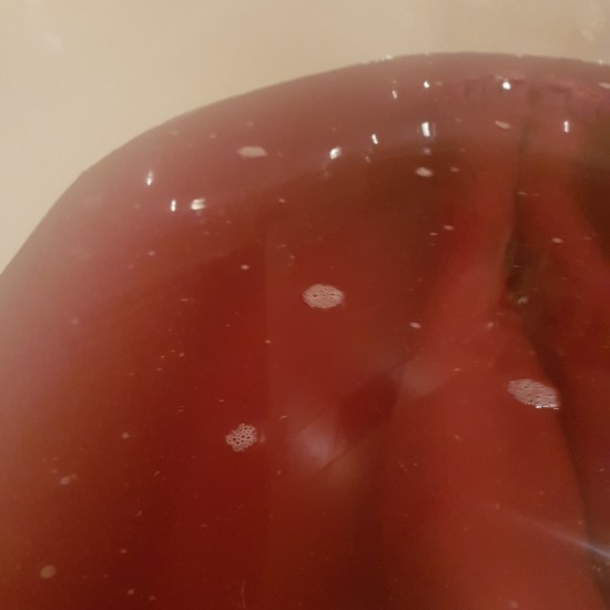 It smells exactly like the shower cream, which means it is herbs, patchouile, black pepper: pretty strong. Apparently the bath bomb is inspired by the ruler of the pagan Feast of Fools, which is a cute extra thing to know as I used to be very into paganism. Pagans loved wine, and that is why they made this bath bomb turn your bath so winey red.