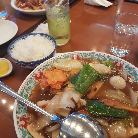 After we had some cake we realised it was almost dinner time, so I checked out Tripadvisor, which had a restaurant only 10 minutes walking away with a very good rating (number two of Nagasaki!). It was called Shikairo, located it a beautiful building with an amazing view. The food was excellent too, though I was a bit disappointed that I could not have any Champon, which is the local dish. They do not really understand vegetarianism here, which is a true pity: I really wanted to try it, but they did not have a veggie version. When I told them I do not eat meat or fish, she said I could order the “steamed vegetables”, which usually came with pork but they would leave them out for me.
