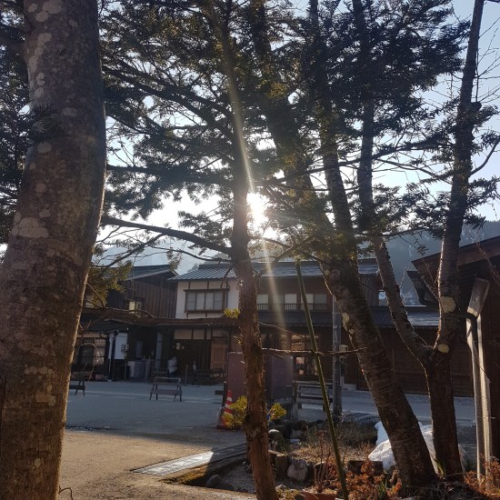 When we arrived at the train station we went onto a bus, that took us on a beautiful journey through the Japanese alps, that are covered in snow. It is such an interesting thing to be in a city first, and then all of a sudden you are in winter wonderland. Even in the little town of Sirakawago there were a lot of piles of snow. It was really beautiful and the sun was shining on the icey snow, making it melt like crazy.
