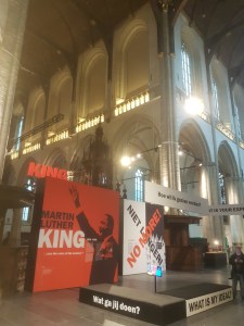 Anyway, I went there with L, who kinda had the idea of going there anyway, so I was happy to escort her, haha. Plus, after our Amsterdam Museum Night adventure we had a free ticket to visit one of the museums again, so this was our museum of choice. The Nieuwe Kerk is a beautiful tall church in the centre of Amsterdam, which is an ideal place for exhibitions. Especially the big screen with Martin Luther Kings epic speech on it was very impressive, with the benches in front of it, the words projected on the floor, it is truly magnificent and it just fits there perfectly.